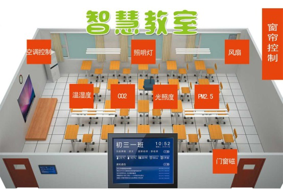 教室環境測量:如光照、空氣溫濕度、CO2、PM2.5探測等設備可以實現對教室環境的實時測量和實時顯示;