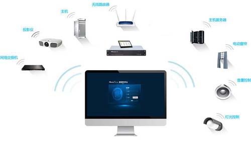 多媒體中控主機(jī)融合智能物聯(lián)無(wú)所不控,投影機(jī)、LED大屏、一體機(jī)、燈光、窗簾、電動(dòng)幕布、環(huán)境溫濕度等等。