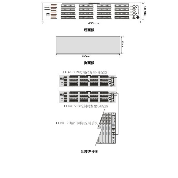 LH40-91X控制碼發生/分配器可把矩陣主機CPU高速數據線上的控制信號變換成485控制協議/曼碼控制協議輸出,單機箱多可提供64個獨立的經緩沖的控制碼輸出,輸出分4組,每組16個,每組可控制64個攝像機現場。