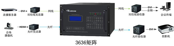 選用配置靈活的矩陣信號切換器。采用高性能的硬件設計切換過程無黑屏、無裂縫,完美支持各類高清晰數字/模擬信號切換處理,結合布線工程在會議室預埋各種線纜,系統中的矩陣配高清線纜實現對信號的無損傳輸,從而保證信號的傳輸質量;提升了傳輸距離;對系統中種類繁多的視頻信號源實施無縫銜接、轉換、切換、傳輸,對會議室內所有信息接入點等信號源配合控制系統進行集中化統一管理。