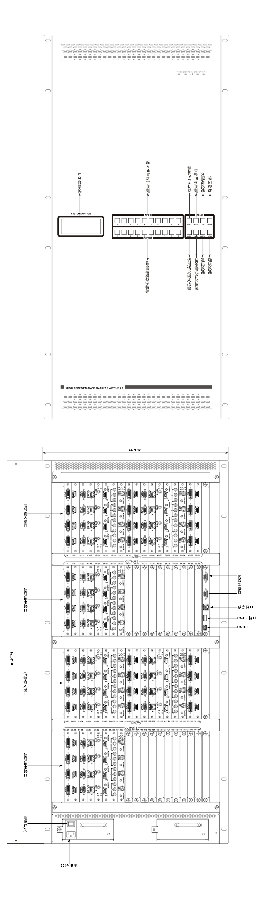 LH70-MT240 | 112進112出高清混合矩陣,24U機箱,含CPU控制模塊、電源模塊、切換模塊、面板鍵盤控制模塊。(板卡自選) |