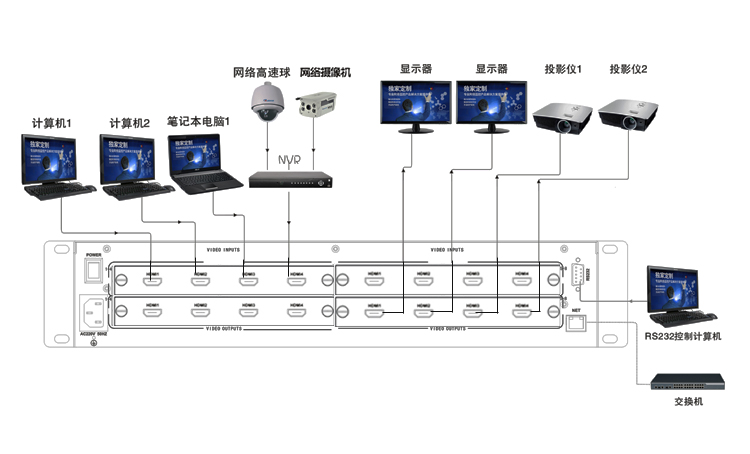 4進(jìn)4出高清HDMI矩陣,6.5G帶寬,EDID處理,面板/紅外/RS-232控制。 |