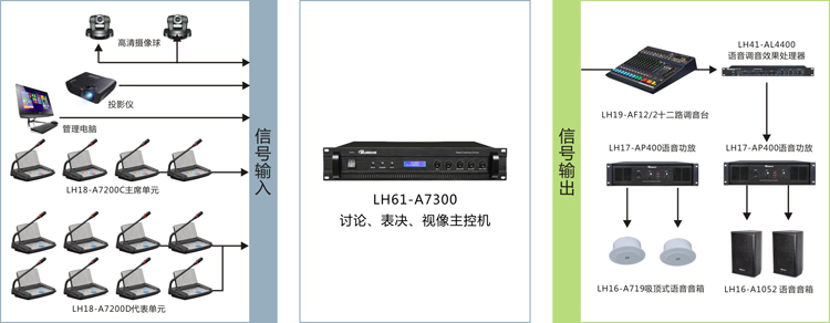 ● 單機可實現下列幾個會議功能:開放式會議、限制發言、先進先出、表決、影像定位跟蹤。