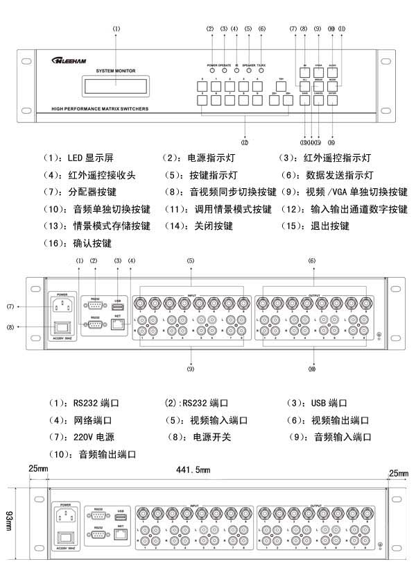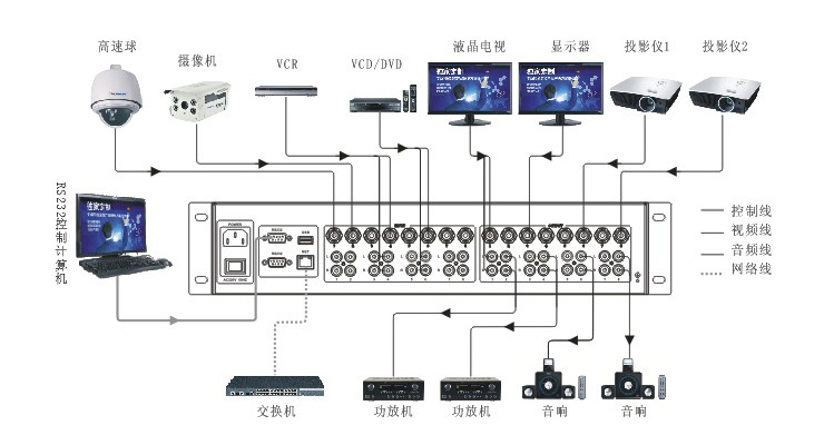 LH60-AV808 | 8進8出視音頻矩陣切換器,視頻RCA接口,音頻非平衡立體聲RCA接口。面板/紅外/RS-232控制。 |