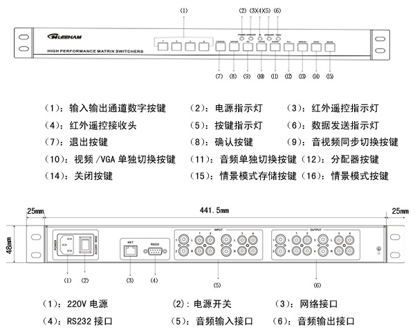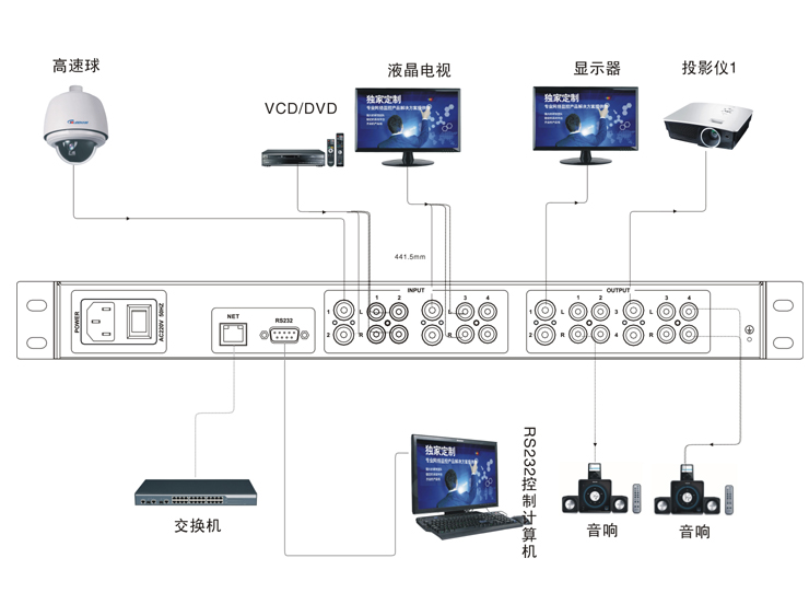 LH60-AV404 | 4進4出視音頻矩陣切換器,視頻RCA接口,音頻非平衡立體聲RCA接口。面板/紅外/RS-232控制。 |