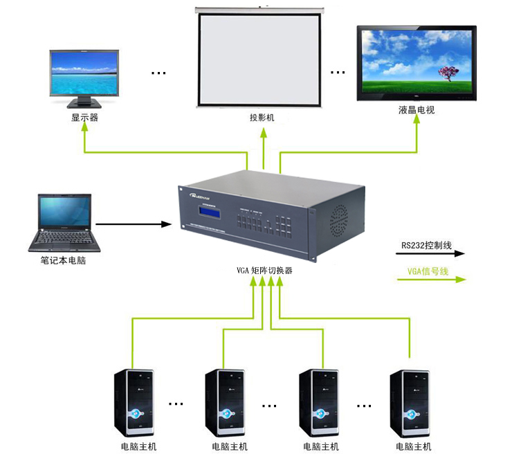 LH60-VGA16-8 | 16進8出矩陣切換器,15HD母接口,350MHZ, 面板/RS-232控制/紅外遙控器。 |